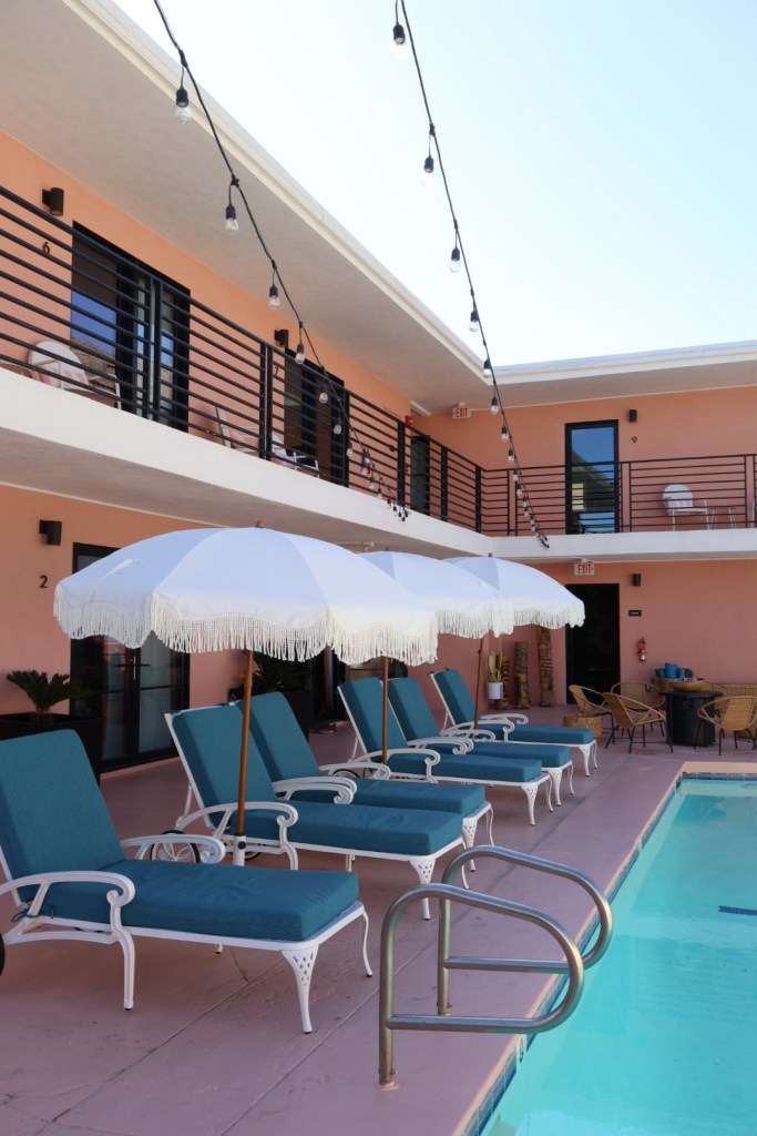 When you think of Palm Springs, you think of poolside leisure, lounging on a retro-style chaise, a chilled drink in hand, while basking under the warm desert sun. The Stardust is the epitome of this poolside culture and one of my favorite amenities of the overall hotel experience. With a row of blue chaise lounge chairs accompanied with boho-style umbrellas, it’s the perfect spot to chill out and catch some rays. I was fascinated by the different unique decor pieces of picture frames on the walls, inflatable swans, a large Barbie doll sitting poolside, and a mannequin standing next to a clothing rack of sparkly dresses. I can’t wait to be back in the summertime to fully enjoy the experience of this dreamy pool.